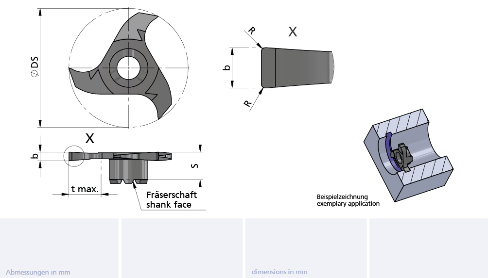 Produktinformationen "Mini Mill insert AL41F ø=34 b=1.7-0.02 R=0.2 tmax=12mm"